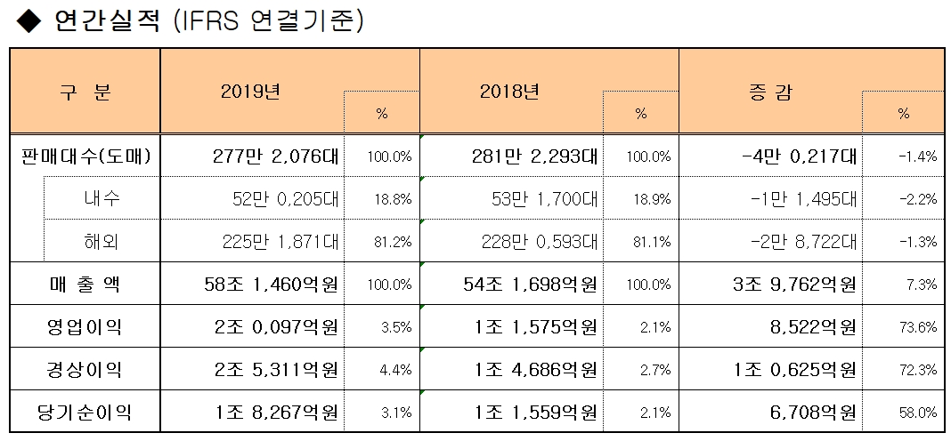 기아차, 지난해 매출 58조1460억…영업익 73.6%↑